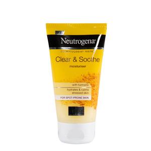 Neutrogena Clear & Soothe Moisturiser er en lett ansiktskrem spesielt utviklet for sensitiv, uren og stresset hud. Den beroliger og fukter huden effektivt. Denne hurtigabsorberende gelkremen har en unik sammensetning av gurkemeie, glyserin, pantenol og C-vitamin som umiddelbart beroliger og fukter huden. Resultatet er en myk og smidig hud med jevnere hudtone.