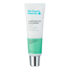 The Organic Pharmacy Clarifying Gel Moisturiser er en fuktighetsbevarende og matterende gel som er utviklet for kombinert hud og uren hud. Den inneholder 2 % ravsyre, som bidrar til å redusere overflødig talg, rense porene og forbedre hudens tekstur. Samtidig virker niacinamid 2 % beroligende, reduserer rødhet og ujevn pigmentering og styrker hudens barriere.