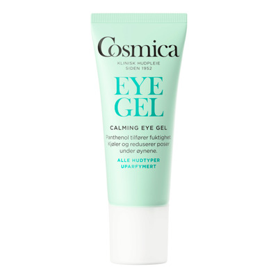 Cosmica Face Calming Eye Gel er en avkjølende og beroligende øyegel utviklet for den sarte huden rundt øynene. Gelen inneholder panthenol og er formulert for å tilføre fuktighet og gi en kjølende følelse ved påføring.