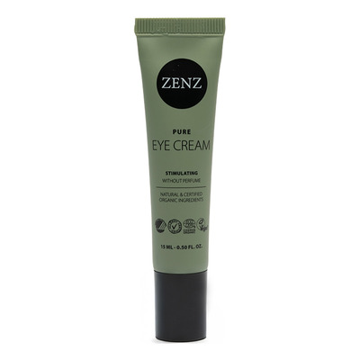 ZENZ Pure Eye Cream har en mild og skånsom formel uten tilsatt parfyme. Tuben er laget av 30 % resirkulert plast, og emballasjen er laget av 100 % resirkulert papir. Øyekremen er sertifisert av Svanemerket, AllergyCertified, Ecocert COSMOS Organic og Vegan.