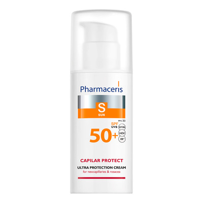 Pharmaceris S Capilar Protect SPF50 er en beskyttende ansiktskrem utviklet for hud med synlig utvidede kapillærer og rosacea som er utsatt for periodisk hyperreaktivitet og vedvarende rødhet. Formelen er utviklet for hud som krever høy beskyttelse mot intenst sollys, skadelig UVA/UVB-stråling, synlig lys og infrarødt lys. Kremen kan også brukes etter estetiske behandlinger, peeling og laserbehandlinger samt under og etter dermatologiske behandlinger.