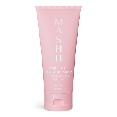 MASHH Pink Repair Moisture Mask er en fuktighetsgivende og reparerende ansiktsmaske med beroligende effekt på irritert og tørr hud. Masken har en vakker rosa farge og en mild duft av vanilje. Den er rik på vitamin E og gurkemeie, som virker som antioksidanter og bidrar til en jevnere hudtone og naturlig glød. Den inneholder også prebiotiske planteekstrakter som styrker og opprettholder hudens naturlige barriere.