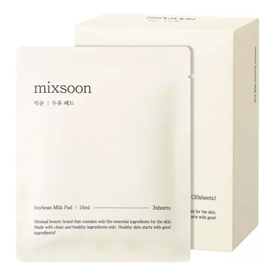 Mixsoon Soybean Milk Pad er en innovativ toner i form av tre pads som plasseres på kinn og panne der huden trenger ekstra pleie. Hver pad er tilsatt fermentert soyaekstrakt, som er rikt på antioksidanter, vitaminer og mineraler som fukter og fornyer huden. Hyaluronsyre binder fuktighet i huden, noe som gir en jevnere og mer smidig hudoverflate.