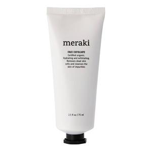 Face Exfoliate fra Meraki er en mild og myk eksfolieringsgel som renser huden skånsomt, stimulerer blodsirkulasjonen, fremmer cellefornyelsen og styrker fuktnivået i huden. Den inneholder blant annet ekstrakter fra brune alger, noe som virker mot aldringstegn, samt nærende rapsolje, begge rike på antioksidanter. Fint pulveriserte aprikoskjerner fjerner i tillegg skånsomt døde hudceller, og du får myk og lekker hud med en vakker, naturlig glød.
