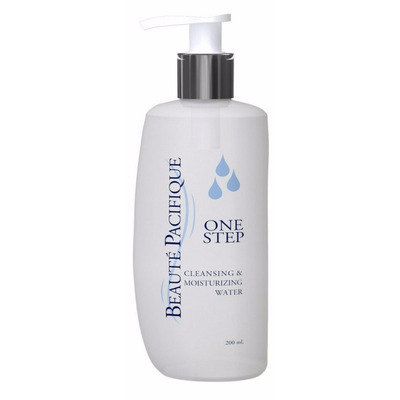Beauté Pacifique One Step Cleansing & Moisturising Water renser skånsomt og effektivt uten bruk av vann. Det løser raskt opp sminke fra ansikt, hals og øyne, samtidig som det fukter og pleier huden i dybden. Produktet fungerer ved å omslutte sminkepartiklene med et lag av tensider/overflateaktive stoffer som danner en rund micelle som ikke fester seg til huden. Passer for alle hudtyper.
