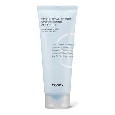 COSRX Hydrium Triple Hyaluronic Moisture Cleanser er en fuktighetsgivende, vannbasert ansiktsrens som passer for alle hudtyper. Rensen fjerner skånsomt smuss, skitt, støv og sminke samtidig som den opprettholder hudens fuktbarriere. Innholdet av tre typer hyaluronsyrer og beroligende panthenol bidrar også til en sunn hudbarriere. Denne rensen er ideell for sart, sensitiv, reaktiv og uren hud. Den er skånsom og lindrer irritasjon og rødhet, noe som gjør den velegnet for tørre hudtyper som ofte opplever irritasjon ved bruk av vannbaserte rensemidler.