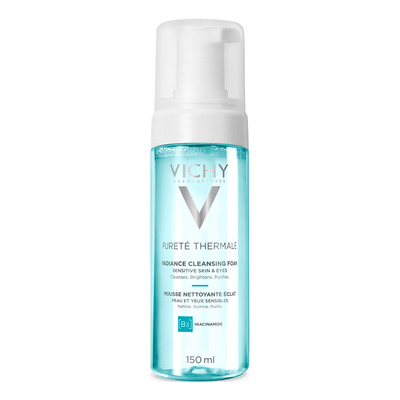 Vichy Pureté Thermale Radiance Cleansing Foam er et skånsomt, men dyptgående renseskum som er utviklet for alle hudtyper. Renseskummet fjerner effektivt urenheter og sminke, samtidig som det gir huden ny glød og etterlater den frisk og ren. Produktet er formulert med nærende ingredienser som sheasmør og glyserin, og renser ikke bare, men gir også næring og fuktighet til huden.