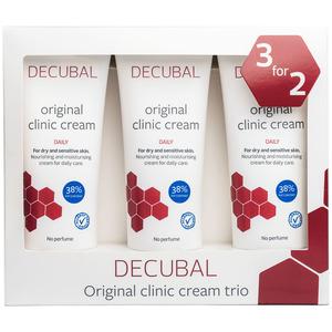Decubal Clinic Cream i 3-pakning som fukter huden med dimetikon og glyserin.