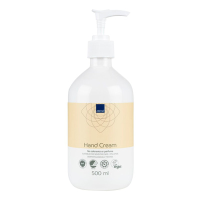 Abena Hand Cream trenger raskt inn i huden og er parfymefri. Den er dermatologisk testet, vegansk, svanemerket og bærer Asthma Allergy Nordic-merket. Kremen er ideell både til hjemmebruk og i profesjonelle miljøer med hyppig håndvask.