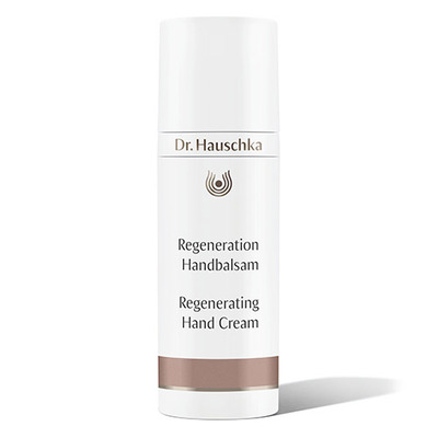 Dr. Hauschka Regenerating håndkrem gir en effektiv beskyttelse av hendene mot miljøpåvirkninger som kulde og forurensning. Håndkremen inneholder næringsrik olivenolje, avokadoolje og kakaosmør, som alle er med til å styrke huden og dens elastisitet. I tillegg inneholder kremen næringsrike planteekstrakter fra rødkløver, bryophyllum og kvædefrø som gir fukt og som styrker hudens motstandsdyktighet.