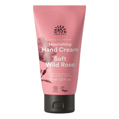 Urtekrams Soft Wild Rose Hand Cream er en pleiende håndkrem som gir intensiv fukt til hendene. Håndkremen inneholder blant annet hyaluronsyre, glyserin, økologisk aloe vera og økologisk jojobaolje som holder huden myk og fuktet i dybden – helt uten å virke fet. Soft Wild Rose Hand Cream har en frisk, feminin duft av villroser samt en behagelig konsistens som lett absorberes i huden.