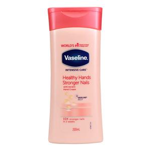 Denne populære og multifunksjonelle håndkremen fra Vaseline gir grundig pleie til hendene, og den effektive formelen bidrar både til sunnere, mykere hender og sterkere, sprekkfrie negler. Formelen er tilsatt mykgjørende dråper av Vaseline Jelly™ og styrkende keratin. Håndkremen er klinisk bevist å gi deg opptil 10 ganger sterkere negler etter bare 2 ukers bruk, noe som er spesielt bra for deg med svake og myke negler.