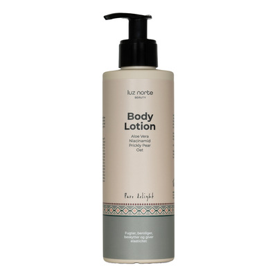Luz Norte Body Lotion er en mild og effektiv lotion for daglig pleie av hele kroppen. Den er basert på økologisk aloe vera, som virker beroligende og fuktighetsbevarende. Med aktive ingredienser som niacinamid, fikenpæreolje, havre og squalane bidrar den til å gjenoppbygge hudens naturlige barriere og minimere rødhet. Den lette konsistensen absorberes raskt og etterlater huden myk og smidig uten å fedte.