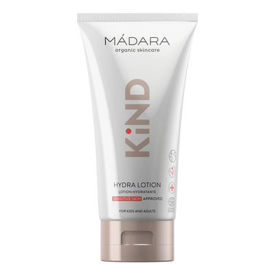 Denne milde bodylotionen fra Mádaras Kind-serie fukter og pleier sart og sensitiv hud. Den etterlater huden myk og glatt. Bodylotionen inneholder naturlige ekstrakter av multebær og linfrø som bidrar til å gi huden ny næring og styrke hudens naturlige barriere. Denne bodylotionen er utviklet for hele familien og er skånsom mot babyhud. Den er også dermatologisk testet og vegansk.