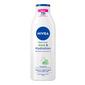 Nivea Aloe & Hydration Body Lotion er utviklet for å fukte huden i dybden og etterlate den merkbart myk og glatt. Den fukter huden i opptil 72 timer, og den ultralette, forfriskende lotionen trekker raskt inn uten å klistre. Beriket med hyaluronsyre, aloe vera og nærende serum, bidrar denne bodylotionen til å forbedre hudens helse og glød etter hver bruk. Ideell for normal til tørr hud, men passer for hele kroppen året rundt.