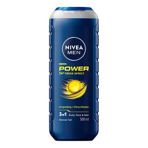 Nivea Men Power Fresh Shower Gel er en kroppssåpe spesielt utviklet for menn. Såpen rengjør effektivt og skånsomt hår, kropp og ansikt. Dusjgelen er laget med en nærende sitrusformel som gir den en ekstra friskhet og kraftig duft. Hår og hud etterlates med en frisk og fuktig følelse.