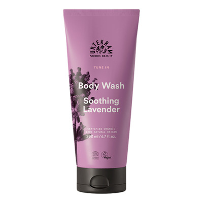 Soothing Lavender Body Wash fra Urtekram er en pleiende kroppssåpe basert på mild, forsåpet kokosolje, aloe vera og fuktgivende glyserin. Såpen er naturlig rik på antioksidantrik E-vitamin og inneholder dessuten nærende magnoliebarkekstrakt samt eteriske oljer fra rosmarin, eukalyptus, kamille og lavendel som gir såpen en vidunderlig, blomstrende duft.