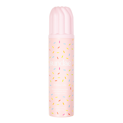 Sundae Whipped Shower Foam Birthday Cake er en vegansk kroppsvask med en skummende, kremet konsistens og duftnoter av vanilje, smørkrem og sukker. Kroppsvasken er egnet for både tørr og sensitiv hud og etterlater huden frisk og velduftende. Det luftige skummet er fritt for alkohol, parabener og sulfater og gir huden fuktighet i dusjen. Duften er langvarig og gir en behagelig opplevelse ved hver bruk.