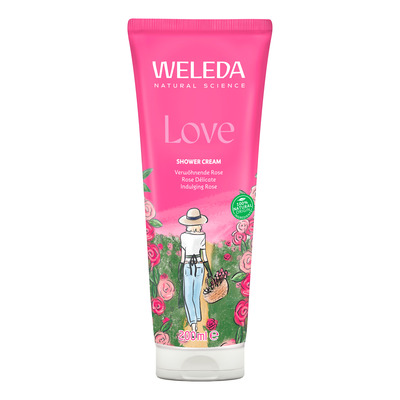 Aroma Shower Love fra Weleda er en naturlig showergel utviklet spesielt til daglig pleie. Med skjønne, blomstrende duftnoter av jasmin, damaskrose og ylang-ylang kjæles sansene med avslappende aromaterapi, mens innholdet av fermentert sukker og solsikkeolje skånsomt renser huden og etterlater den silkebløt.