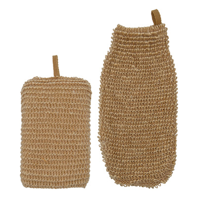 - Sett med jutesvamp og eksfolierende hanske