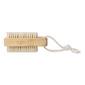 Denne dobbeltsidige neglebørsten er laget av FSC-sertifisert bambustre og har en dobbel funksjon takket være børstenes ulike plassering for effektiv rengjøring av negler og neglebånd. Håndtaket er ideelt for håndtering og gir et godt grep. Neglebørsten har også en bomullssnor til oppheng og tørking etter bruk.