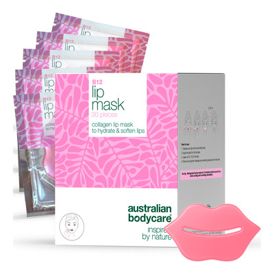 Australian Bodycare B12 Lip Mask er en effektiv leppebehandling for tørre, sprukne og fine linjer rundt leppene. Masken inneholder vitamin B12, kollagen og hyaluronsyre som gir dyp fuktighet og forbedrer leppenes elastisitet. Masken løses langsomt opp ved hudtemperatur og frigjør nærende ingredienser direkte til leppene. Resultatet er glatte, myke og fyldigere lepper etter hver påføring.
