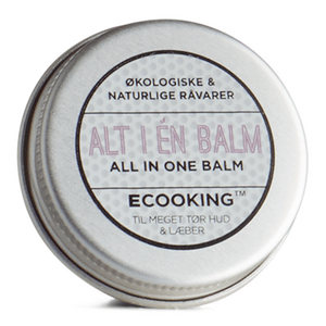ECOOKING All in One Balm er et supermultifunksjonelt produkt som fungerer som en fuktighetsgivende balsam for svært tørr hud i ansiktet og på kroppen. Den inneholder en kombinasjon av økologiske oljer fra ricinus, mandel, oliven og argan, samt bivoks og mykgjørende sheasmør. Balsamen kommer i en liten, praktisk aluminiumskrukke som du enkelt kan ha med deg i håndvesken.