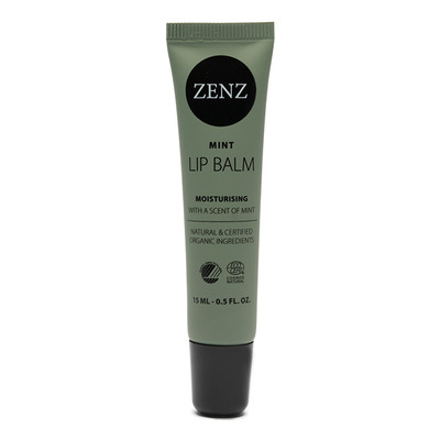 ZENZ Mint Lip Balm har en kjølende og forfriskende følelse ved påføring. Leppepomaden kommer i en tube laget av 30 % resirkulert plast og en eske laget av 100 % resirkulert papir. Den er sertifisert av både Svanemerket og Ecocert COSMOS Natural.