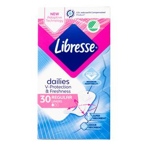 Libresse truseinnlegg er perfekte til daglig bruk så du alltid føler deg sikker og frisk. Libresse truseinnlegg med ProSkin-formel har en pH-avbalansert infusjon, og hvert truseinnlegg er puster for å ta seg av din v-sone. Libresse truseinnlegg med CurveFit er spesielt designet til å følge kroppen og forbli på plass, uansett hva du gjør. Truseinnlegget holder deg tørr og frisk hver dag.