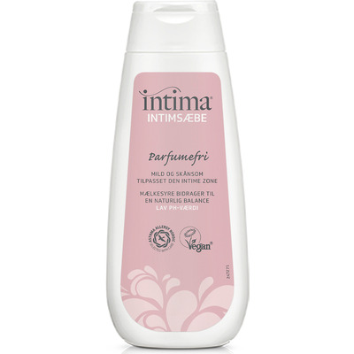 Intimsåpe uten parfyme, som er skånsom og spesielt utviklet for intimsonen. Inneholder melkesyre, som bidrar til en naturlig pH-verdi – og har en lav pH-verdi på 4, som beskytter mot uttørking og irritasjon.