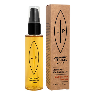 Lip Intimate Care Sea Buckthorn + Fragonia Cleansing + Moisturising Oil er en plantebasert intimolje formulert med sertifiserte økologiske ingredienser. Oljen renser huden og støtter hudens naturlige fuktbarriere. Den inneholder CO₂-ekstrahert tindvedmasse, rik på omega-7, og fragoniaolje med antibakterielle egenskaper.