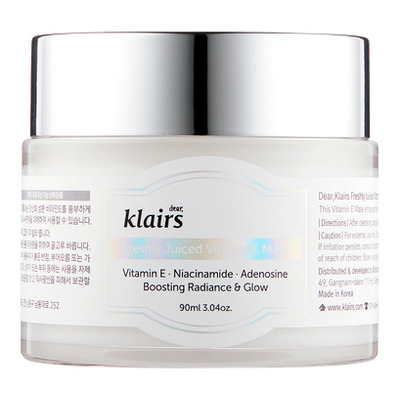 Klairs Freshly Juiced Vitamin E Mask er et multifunksjonelt hudpleieprodukt som kan brukes som ansiktsmaske, nattmaske («sleeping pack») eller som daglig fuktighetskrem. Formelen er rik på vitamin E, en antioksidant som bidrar til å beskytte huden mot oksidativt stress.