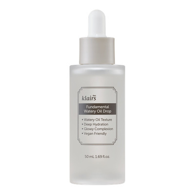 Klairs Fundamental Watery Oil Drop er et vannbasert serum utviklet for å gi fuktighet tilsvarende en ansiktsolje – uten å føles tung eller klebrig på huden. Produktet har en lett konsistens som absorberes raskt og etterlater huden myk og komfortabel.