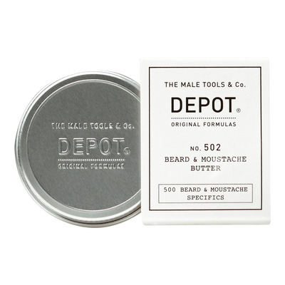 Depot 502 Beard & Moustache Butter er et nærende og mykgjørende "smør" for skjegg og bart. Det inneholder en blanding av naturlige, aktive ingredienser som fukter, pleier, mykgjør og beskytter skjegget. I tillegg bidrar den til å gi glans og gjør det enkelt å kontrollere skjegget.