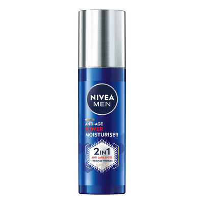 NIVEA MEN Anti-Age Power Moisturiser er en dagkrem spesielt utviklet for menns hud. Den kombinerer patentert Thiamidol® med natriumhyaluronat for å redusere mørke flekker og forhindre at de oppstår på nytt. Den gir også SPF30-solbeskyttelse og 24-timers fuktighet. Formelen er lett og absorberes raskt, og etterlater huden myk og fuktet.