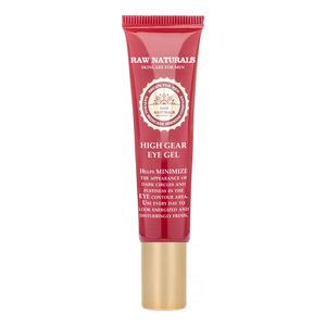 Raw Naturals High Gear Eye gel minimerer hovne øyne samt mørke ringer under øynene. Denne øyegeleen fukter samtidig huden rundt øynene, og gir et oppstrammet og oppfrisket utseende. Geleen inneholder bl.a. svart te, xylitol og havre- og olivenolje som nærer, beskytter og mykgjør øyemiljøet.