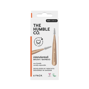 Mellomromsbørsten fra The Humble Co. er utviklet spesielt til å supplere den daglige tannhygienen. Den er fremstilt av bærekraftig bambus med børster av nylon-6 bekledd med vegansk voks for god gli. Denne utgaven er i størrelse 1 med fargekode oransje.