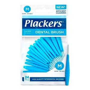 Plackers Dental Brush M 0,6 mm er en mellomromsbørste som er utviklet for effektiv rengjøring av plakk og matrester fra vanskelig tilgjengelige steder mellom tennene. Det fleksible håndtaket gjør det enkelt å manøvrere den lille børsten rundt i munnen og nå selv de mest utfordrende områdene. Børstens metalltråd er plastbelagt for å beskytte tennene og sikre skånsom rengjøring. Plackers Dental Brush kan også brukes til å rengjøre implantater, tannregulering eller brokonstruksjoner som kan være vanskelige å komme til med en tannbørste.