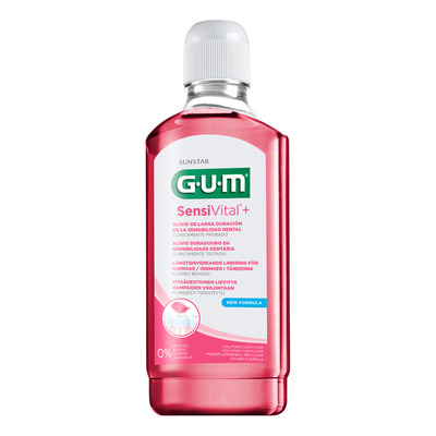 Gum Sensivital+ munnskyll er utviklet spesielt til å sikre deg en langvarig forebygging og lindring av følsomme tenner og tannhalser. Midlet inneholder blant annet en unik kombinasjon av kalsium, fluor og et skreddersydd antiplakksystem, som forebygger karies, forsterker tannemaljen og desensibiliterer dine tannnerver.