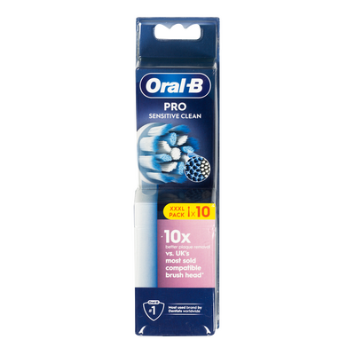 Oral-B Sensitive Clean børstehoder er en 10-pakning som er skånsom mot tannkjøttet og effektivt fjerner plakk