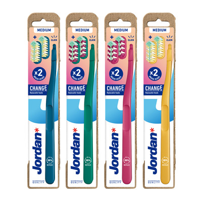 Jordan Change 2 hoder + 1 håndtak - Medium er en tannbørste som bidrar til å redusere plastforbruket gjennom resirkulering