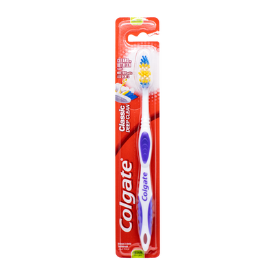Klassisk Colgate tannbørste i medium, designet til å gi en dybdegående børsting av tennene for å understøtte en sunn munnhygiene.