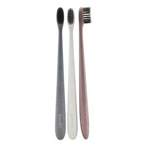 I denne smarte sampakken får du tre stilfulle tannbørster fra Meraki i flotte, dempede fargenyanser. De er fremstilt av 55% hvetestrå og 45% polypropylen med børstehår av nylon i medium hardhet.