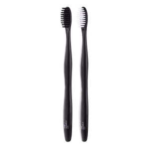 The Humble Co. Plant-based Toothbrush Soft er en pakke med to tannbørster i svart og hvit med middels myk bust. Håndtakene på børstene er laget av plantebaserte materialer, inkludert hvetestivelse, og inneholder opptil 45 % mindre fossil plast. Busten er laget av BPA-fri nylon og består av 65 % plantebaserte materialer fra ricinusbønner.