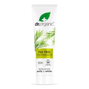 Denne 'triple-action' tannkrem er formulert ut fra de beste naturlige ingredienser i økologisk form, og inneholder organisk Tea Tree olje, Aloe Vera, Silica og islandsk mos. Dr. Organic har formulert en serie ut fra Tea Tree oljen, på grunn av dens fantastiske antiseptiske og antibakterielle egenskaper, som virker rensende og helende. Resultatet ble banebrytende nye produkter innenfor naturlig oral-pleie!