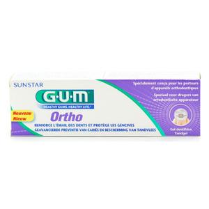 Gum Ortho Gel inneholder aloe vera, ingefær og vitamin E for å berolige sensitivt og irritert tannkjøtt. Tannkremen er fri for SLS (skummiddel), noe som gjør den egnet for følsomme munner. Den milde smaken av mynte gir en frisk følelse. Passer for både voksne og barn fra 7 år og oppover.
