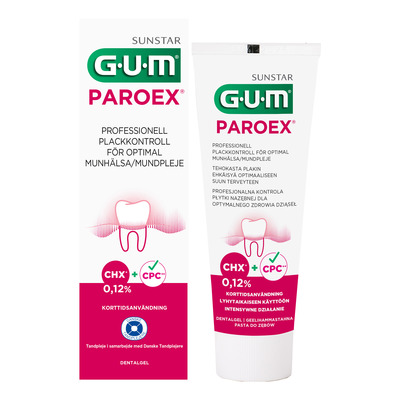 Gum Paroex er spesielt formulert med et dobbeltvirkende antiseptisk system som sikrer maksimal plakkbekjempelse og optimal tannkjøtthelse.