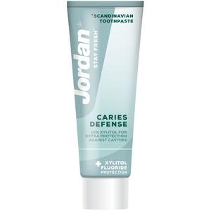 Jordan Stay Fresh Caries Defence Toothpaste er utviklet med fokus på effektiv kariesbeskyttelse og langvarig friskhet. Den inneholder en høy konsentrasjon av fluor (1450 ppm) kombinert med xylitol - et naturlig søtningsmiddel utvunnet fra planter og trær - som sammen gir en dokumentert sterkere effekt mot plakk og syreskader enn fluor alene.