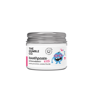 Med dette innovative produktet får du den klassiske Natural Toothpaste-formel fra The Humble Co. i bærekraftig glassemballasje. Denne varianten er fremstilt spesielt til barn, har et lavere fluoridinnhold enn de øvrige varianter og kommer dessuten med en deilig, frisk jordbærsmak.