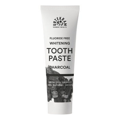 Urtekram Charcoal Toothpaste er en fluorfri tannkrem som rengjør effektivt og bidrar til å bleke smilet ved hjelp av naturlig pilekull. Formelen inneholder også sink laktat, som bidrar til å kontrollere plakk og redusere dårlig ånde, slik at munnen føles frisk lenger.